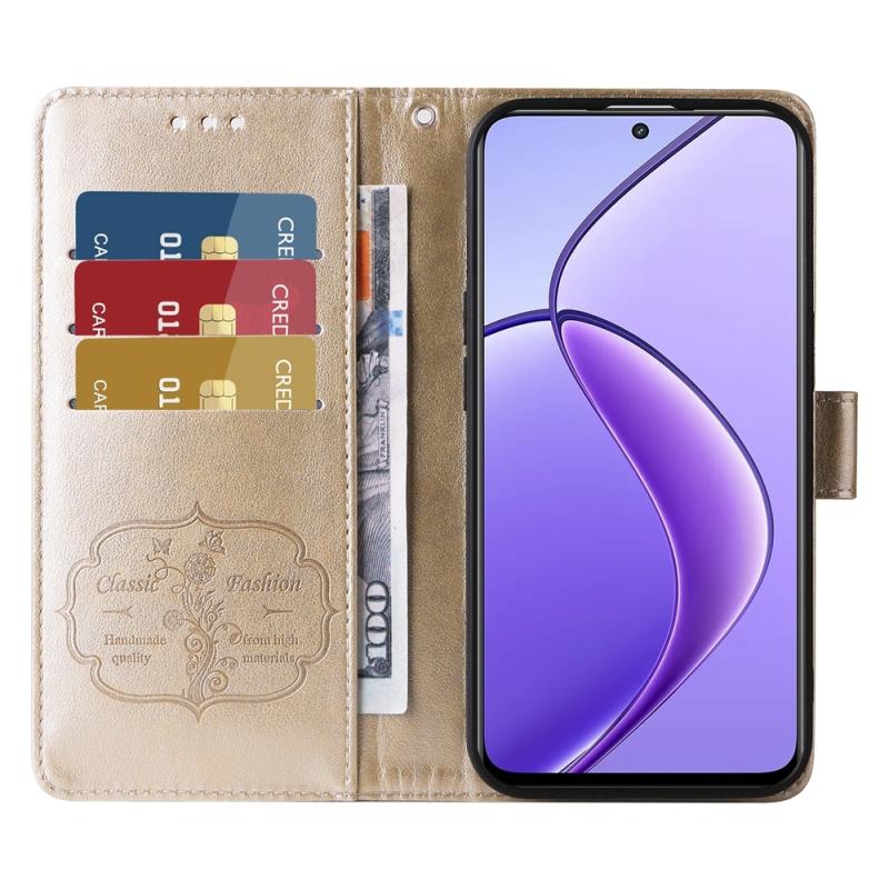 For Realme 12 5G / 12x 5G / C65 5G Global Embossed Butterfly Flowers Leather Phone Case(Gold)