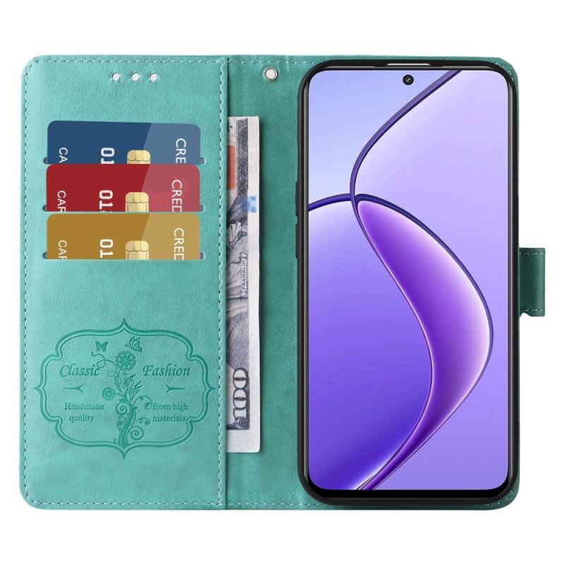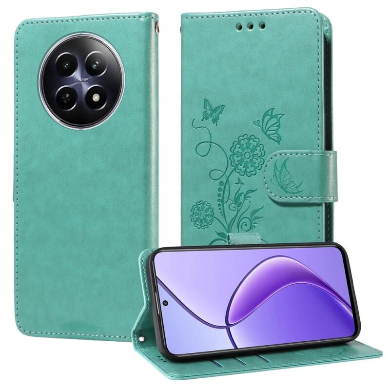 For Realme 12 5G / 12x 5G / C65 5G Global Embossed Butterfly Flowers Leather Phone Case(Green)