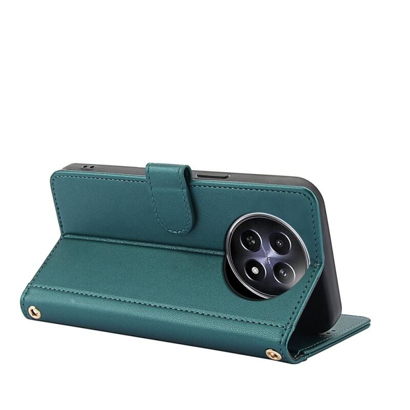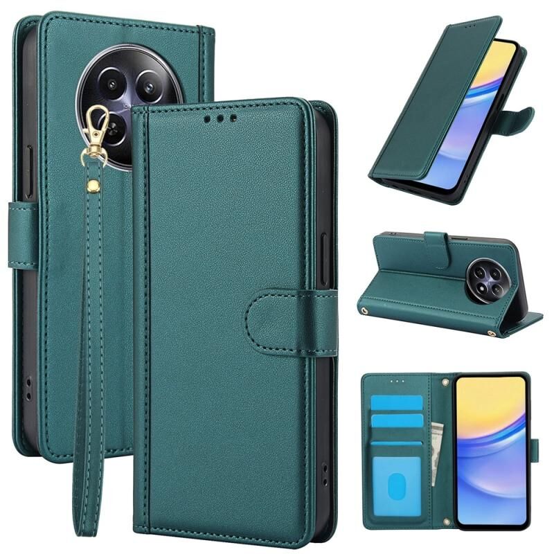 Για Realme 12 5G / 12x 5G / C65 5G Skin Feel Pure Color Card Slots δερμάτινη θήκη τηλεφώνου με διπλό κορδόνι (πράσινο)