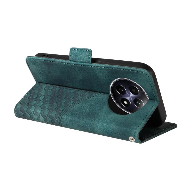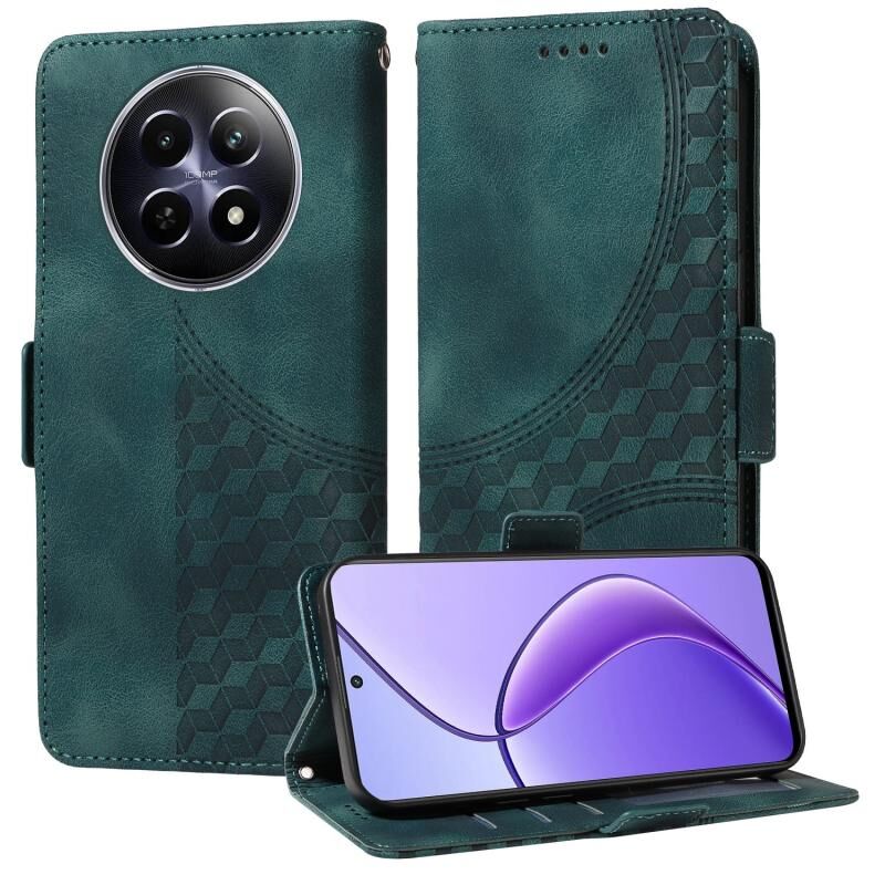 For Realme 12 5G / 12X 5G Embossed Rhombus Starry Leather Phone Case(Green)