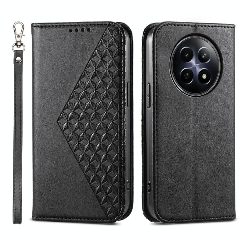 Θήκη τηλεφώνου από μαγνητικό δέρμα για Realme 12 5G με υφή Cubic Grid Calf (Κίτρινο)