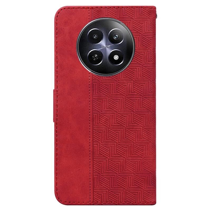 Για Realme 12 5G Γεωμετρική ανάγλυφη δερμάτινη θήκη τηλεφώνου (κόκκινο)