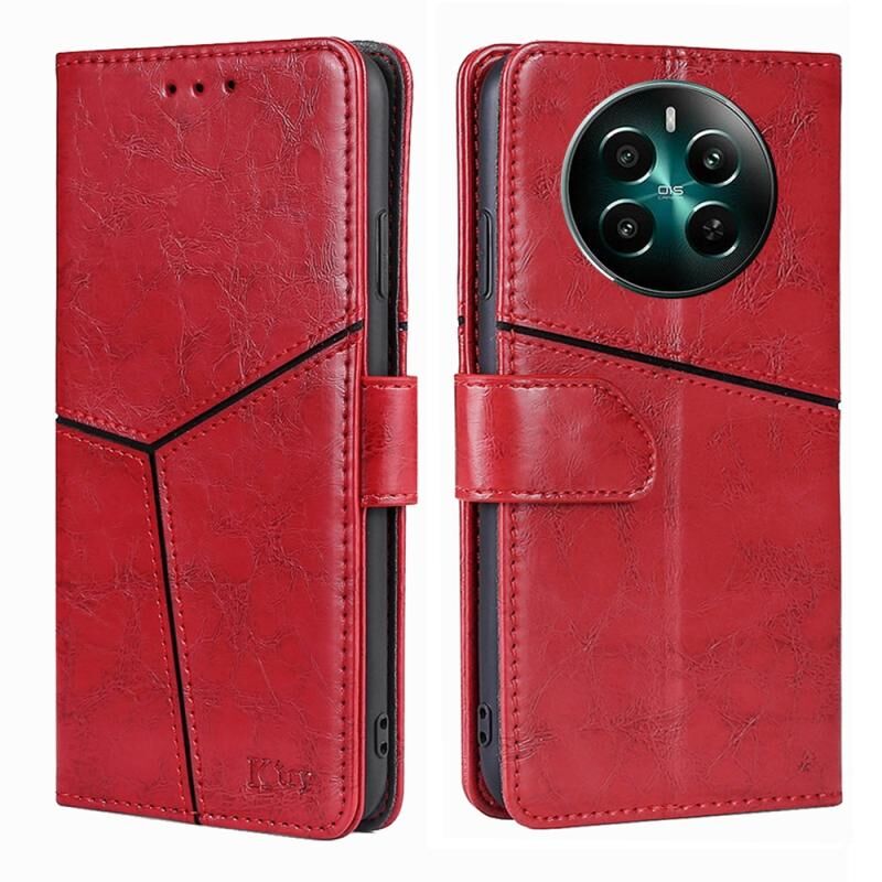 Για Realme 12+ 5G Γεωμετρική ραφή δερμάτινη θήκη τηλεφώνου (κόκκινο)