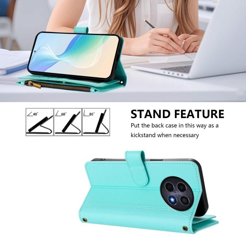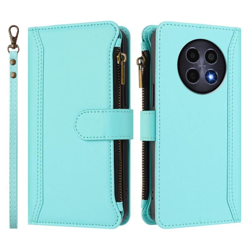 For Realme 12 5G Global / 12X 5G Global Magnetic Closure 9 Card Slots Zipper Leather Case with Hand Strap(Mint Green)