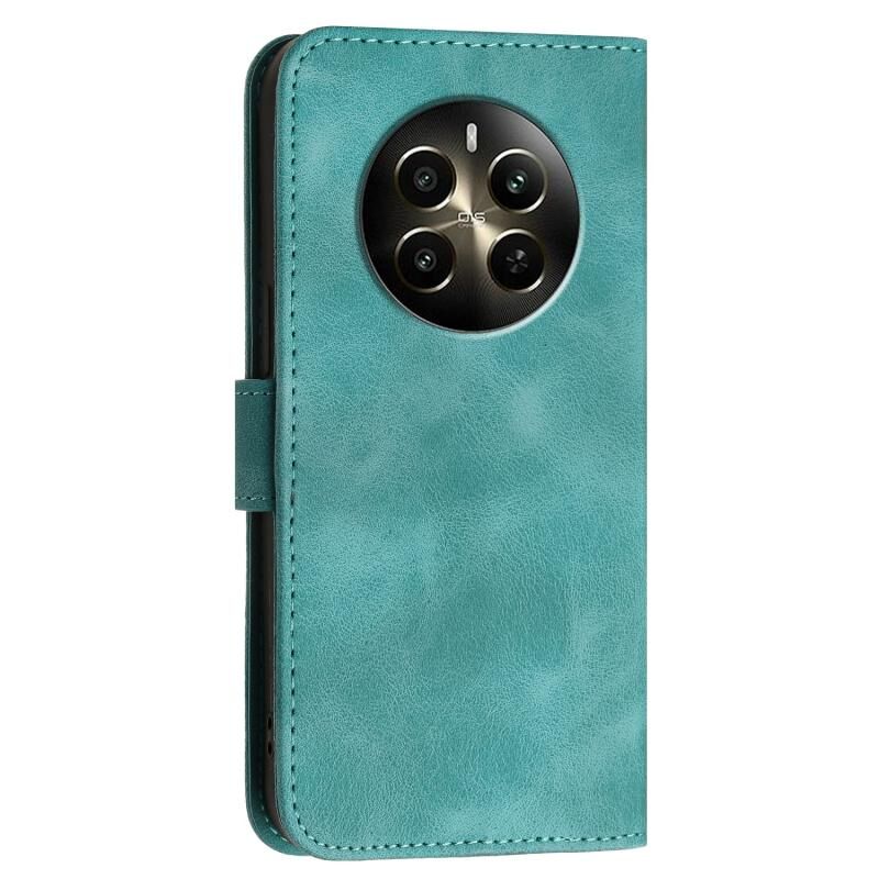 Θήκη τηλεφώνου δερμάτινη με ανάγλυφο σχέδιο πεταλούδας και πλέγμα για Realme 12+ 5G Global με κορδόνι (Κόκκινο)