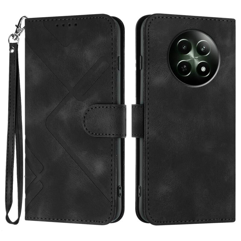 Για Realme 12 5G Παγκόσμια γραμμή μοτίβο δέρμα αίσθηση δέρμα τηλέφωνο υπόθεση (μαύρο)