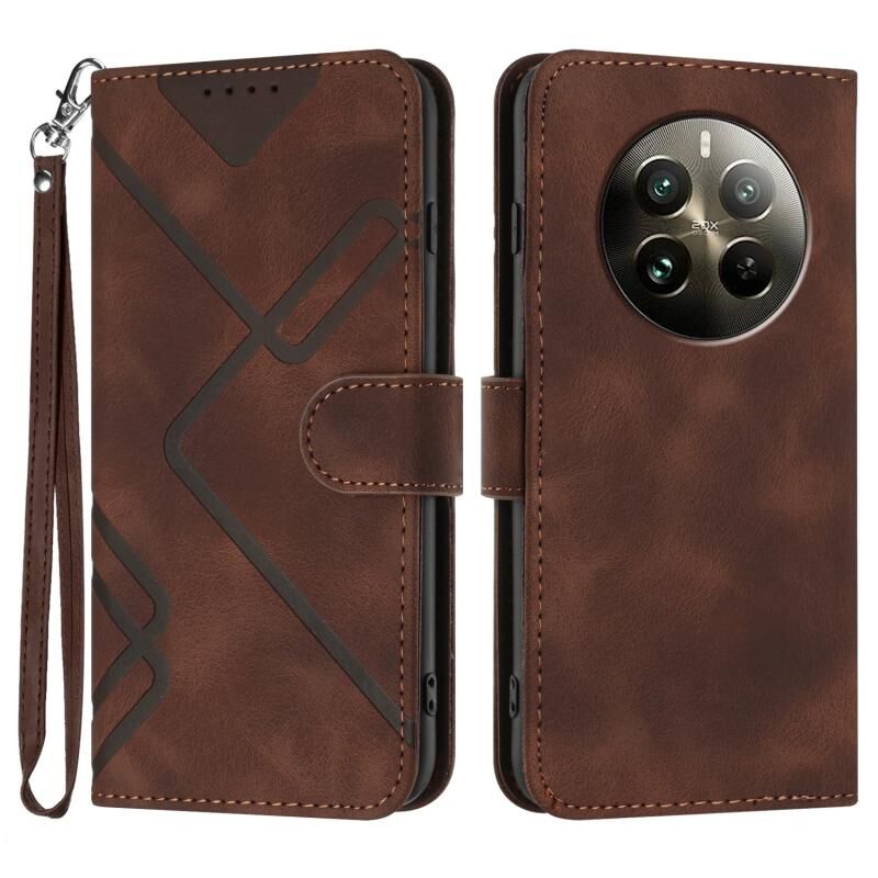 Για Realme 12 + 5G Παγκόσμια γραμμή μοτίβο δέρμα αίσθηση δέρμα τηλέφωνο υπόθεση (καφέ)