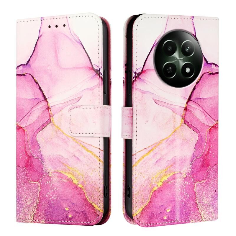 For Realme 12 5G Global PT003 Marble Pattern Flip Leather Phone Case(Pink Purple Gold)