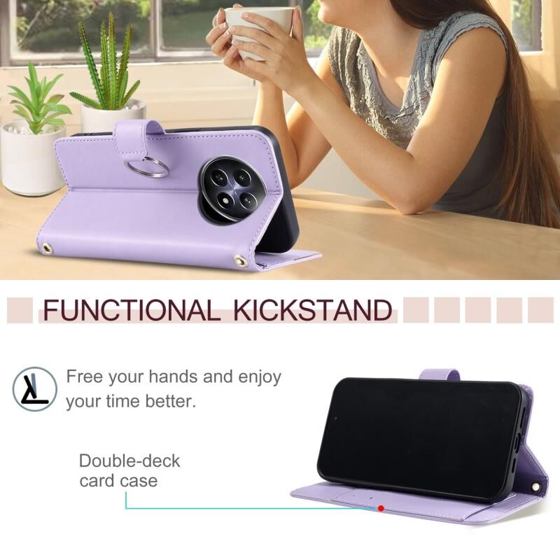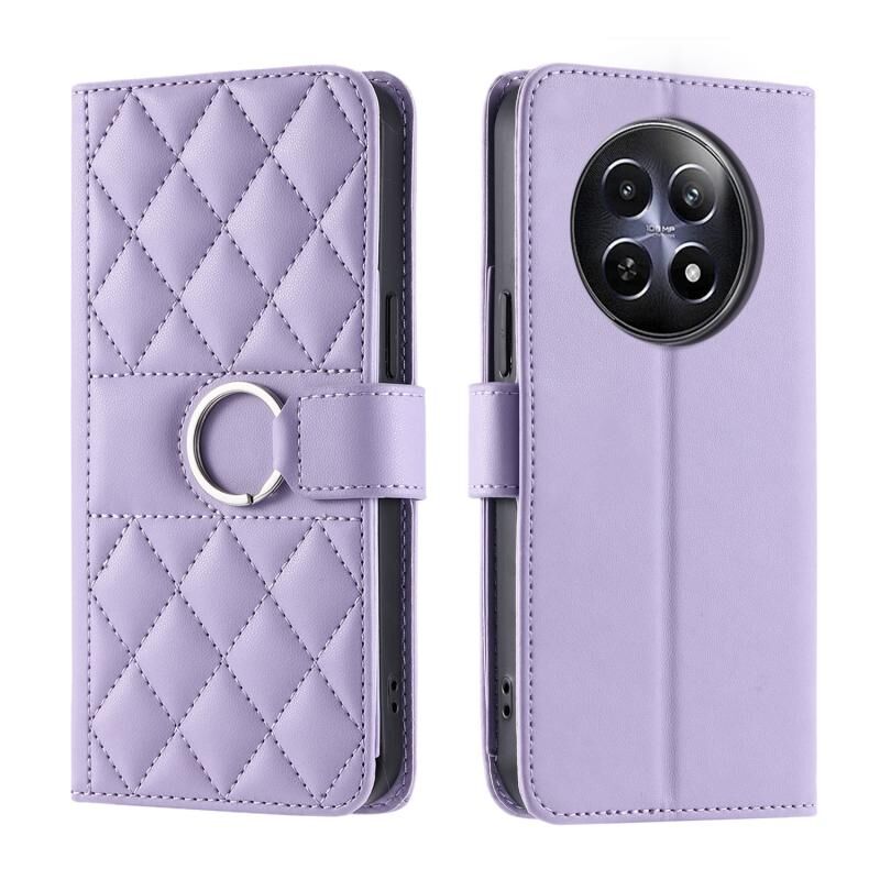 For Realme 12 5G Global Ring Buckle Rhombic Leather Phone Case(Purple)