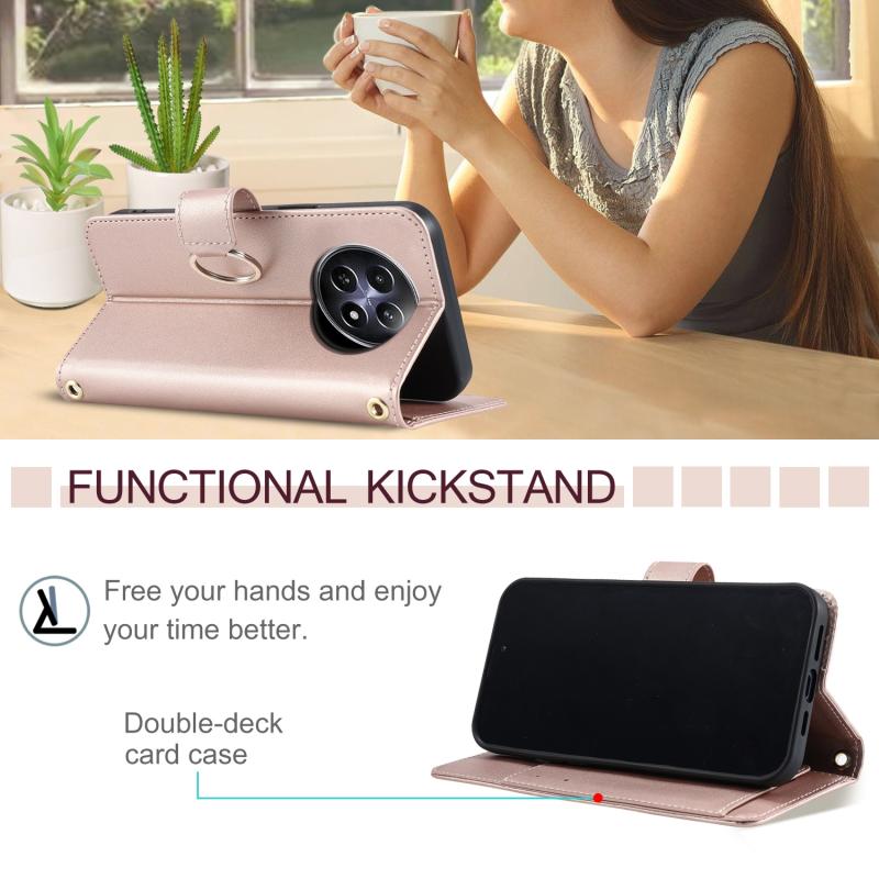 For Realme 12 5G Global Ring Buckle Rhombic Leather Phone Case(Rose Gold)