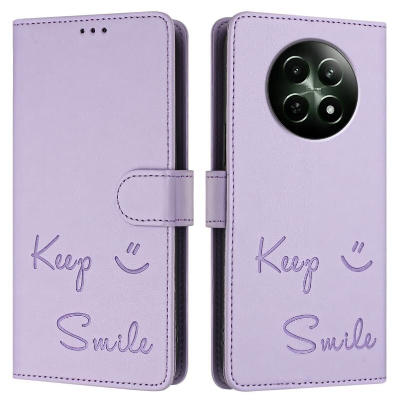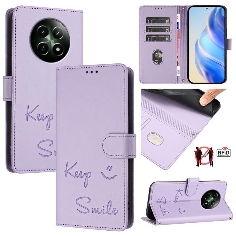 Για Realme 12 5G Global Smile Ανάγλυφο RFID δερμάτινη θήκη τηλεφώνου (Light Purple)