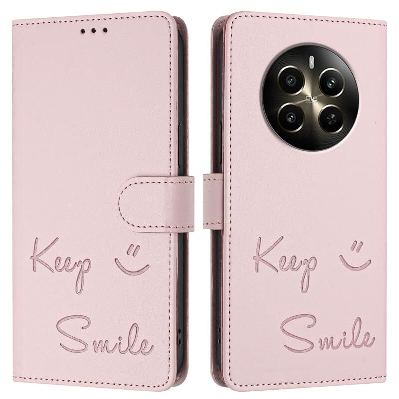 Για Realme 12+ 5G Global Smile Ανάγλυφο RFID δερμάτινη θήκη τηλεφώνου (ροζ)
