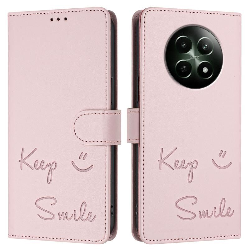 Για Realme 12 5G Global Smile Ανάγλυφο RFID δερμάτινη θήκη τηλεφώνου (ροζ)