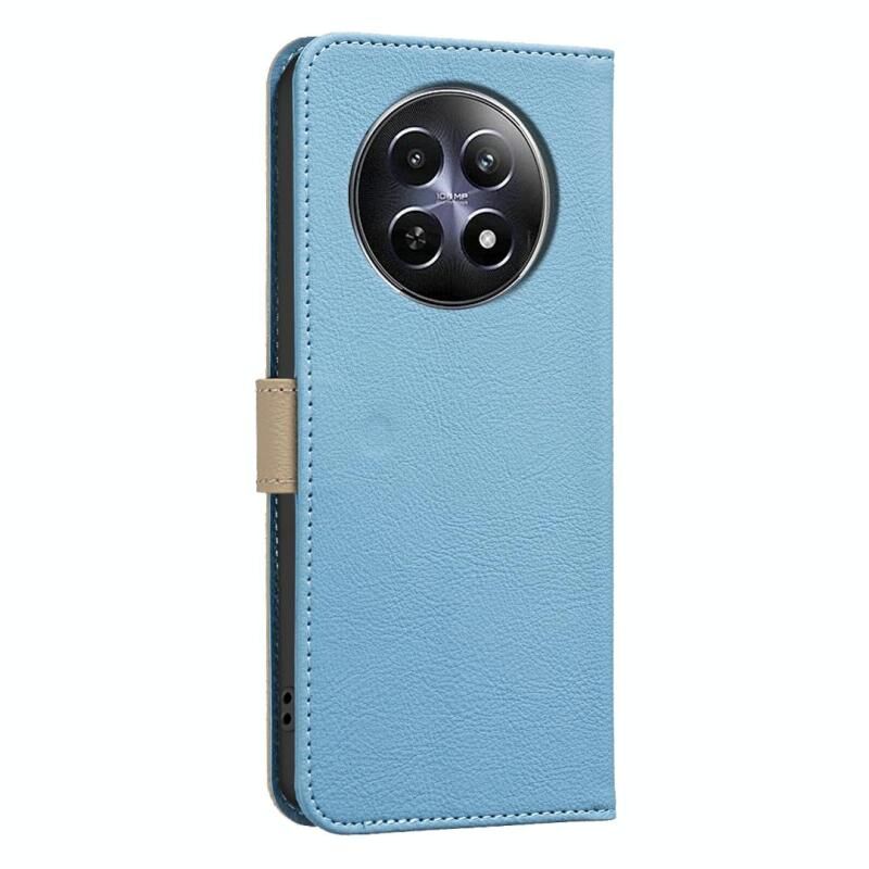 For Realme 12 5G Global Splicing Color Hollow Flower Pattern RFID Leather Phone Case(Baby Blue)