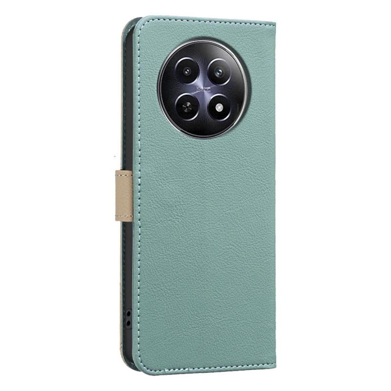 For Realme 12 5G Global Splicing Color Hollow Flower Pattern RFID Leather Phone Case(Green)