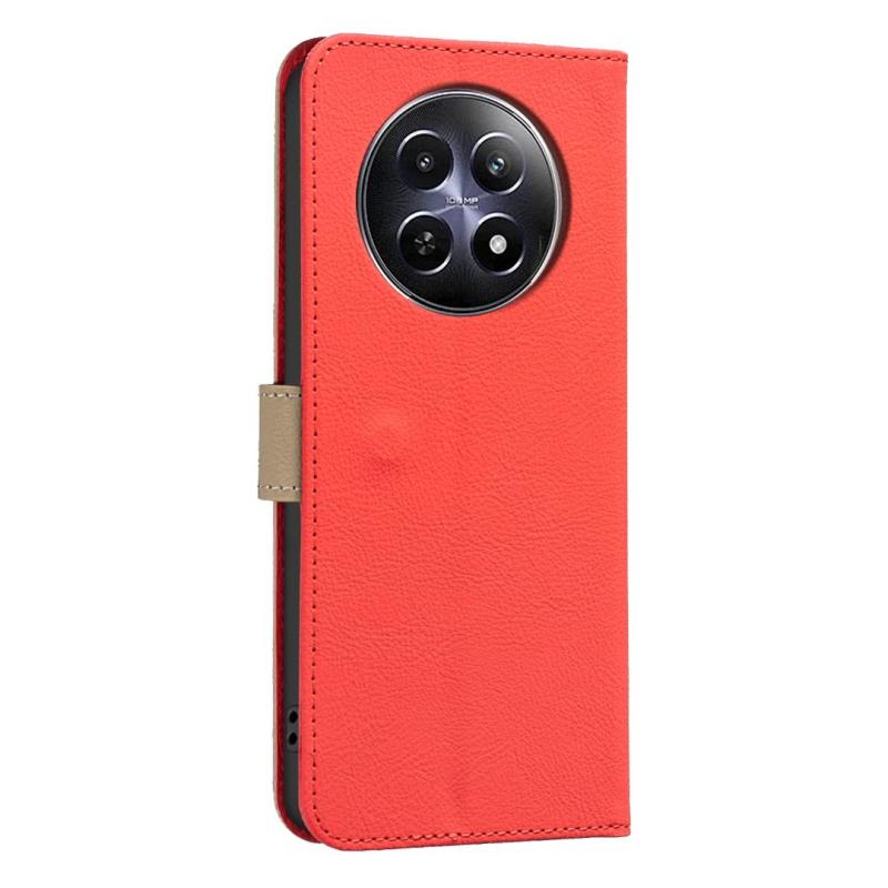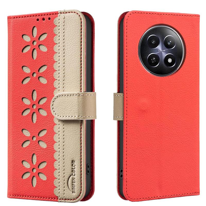 For Realme 12 5G Global Splicing Color Hollow Flower Pattern RFID Leather Phone Case(Red)