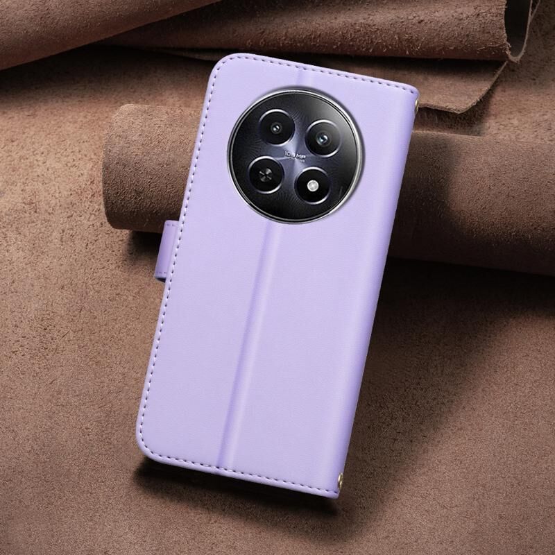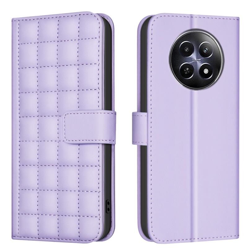 Θήκη τηλεφώνου από δέρμα με τετράγωνη υφή για Realme 12 5G (Μωβ)