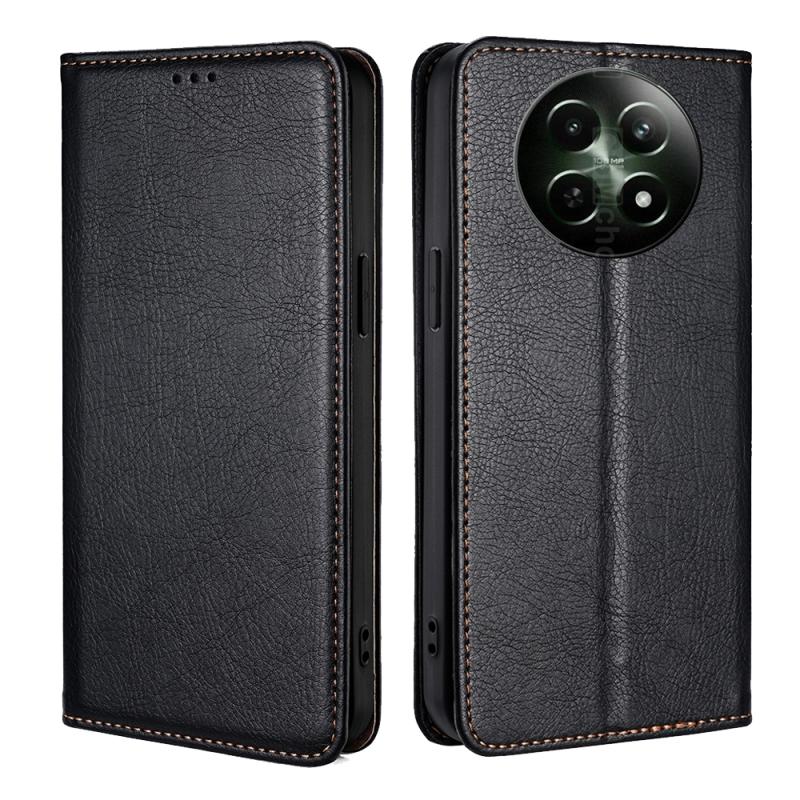 For Realme 12 5G Gloss Oil Solid Color Magnetic Leather Phone Case(Black)