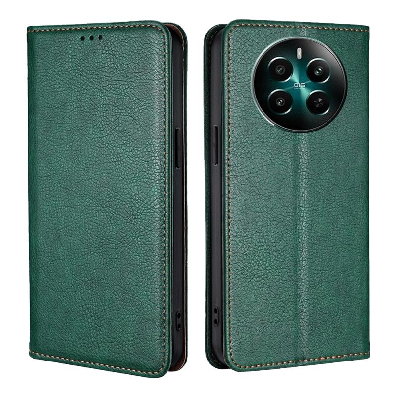 For Realme 12+ 5G Gloss Oil Solid Color Magnetic Leather Phone Case(Green)