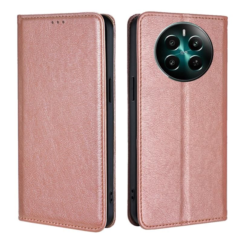 For Realme 12+ 5G Gloss Oil Solid Color Magnetic Leather Phone Case(Rose Gold)
