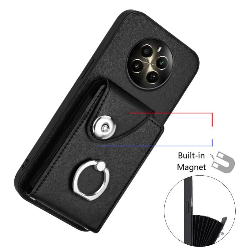 Για Realme 12 + 5G Ινδία Οργανο κάρτα τσάντα δαχτυλίδι κάτοχος υπόθεση τηλεφώνου (μαύρο)