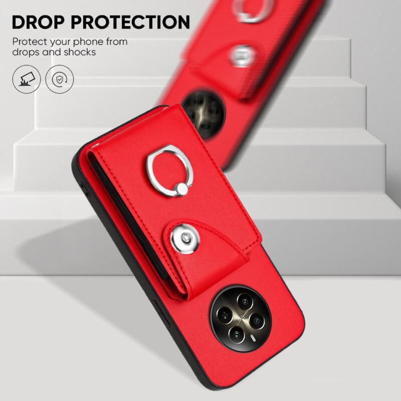 For Realme 12+ 5G India Organ Card Bag Ring Holder Phone Case(Red)