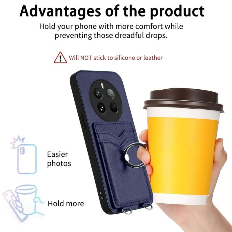 Για Realme 12 + 5G Ινδία / P1 5G Ινδία R20 Crossbody σχοινί δαχτυλίδι κάρτας κάτοχος τηλέφωνο υπόθεση (μπλε)