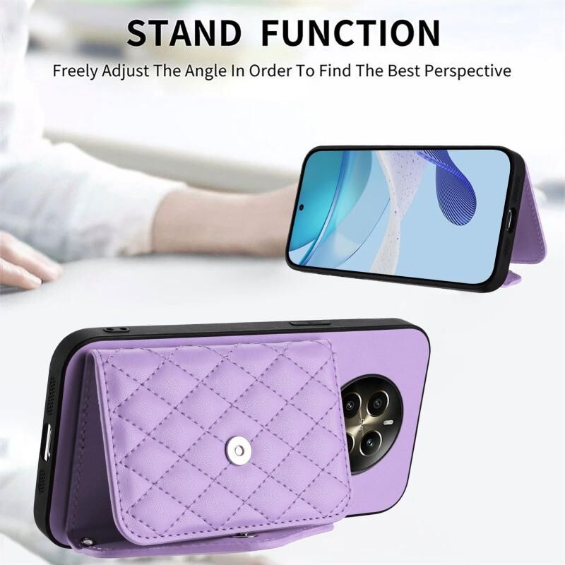 Για Realme 12 + 5G Ινδία Rhombic υφή κάρτα τσάντα RFID υπόθεση τηλεφώνου με μακρύ κορδόνι (Light Purple)
