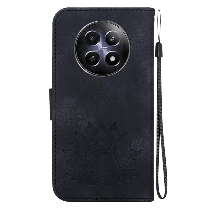 For Realme 12 5G Lotus Embossed Leather Phone Case(Black)