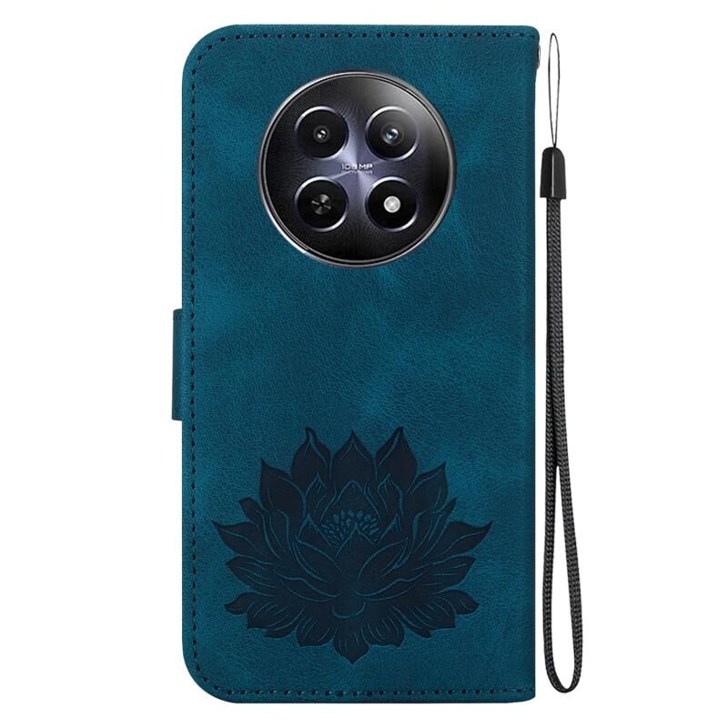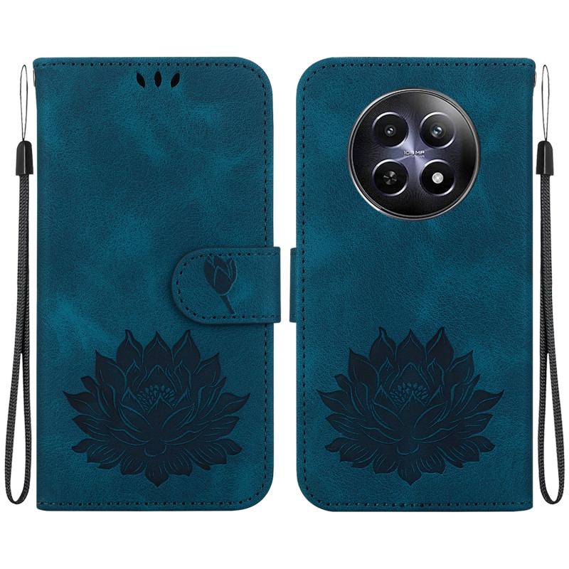 For Realme 12 5G Lotus Embossed Leather Phone Case(Dark Blue)