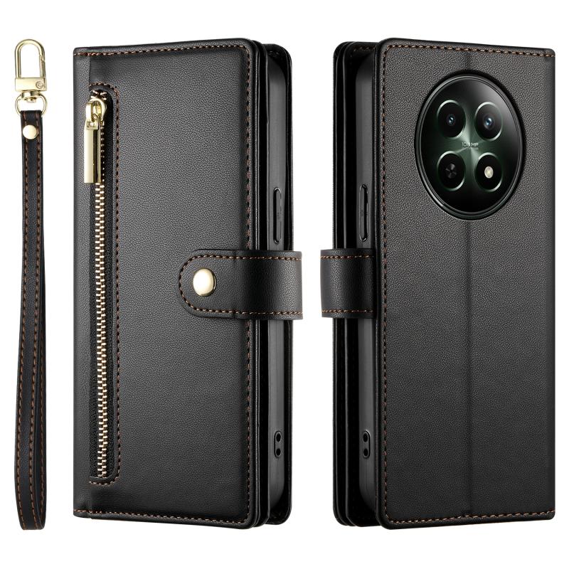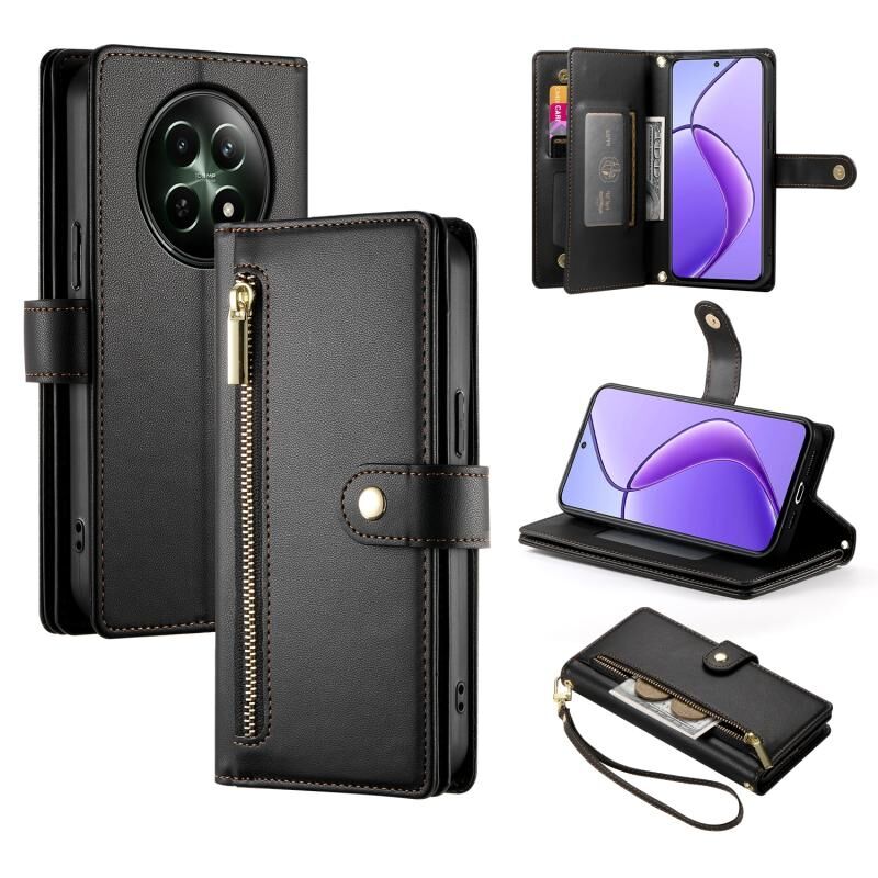 For Realme 12 5G Nine Card-slot Zipper Wallet Bag Leather Phone Case(Black)