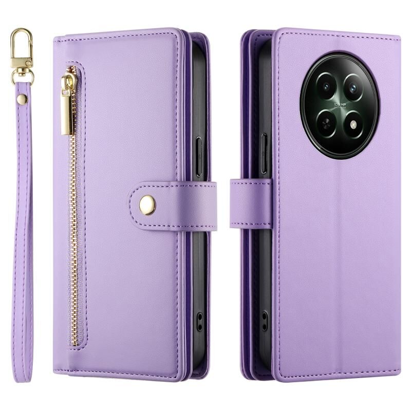 For Realme 12 5G Nine Card-slot Zipper Wallet Bag Leather Phone Case(Purple)