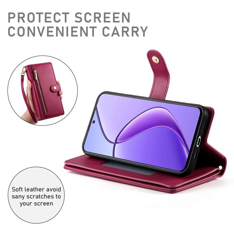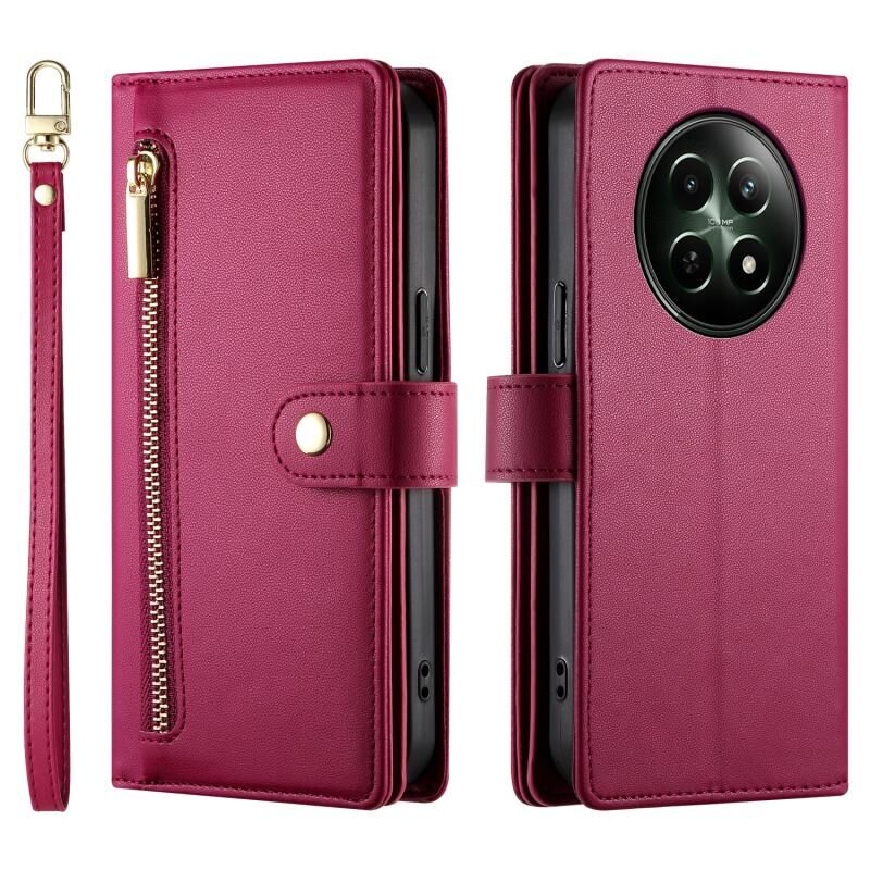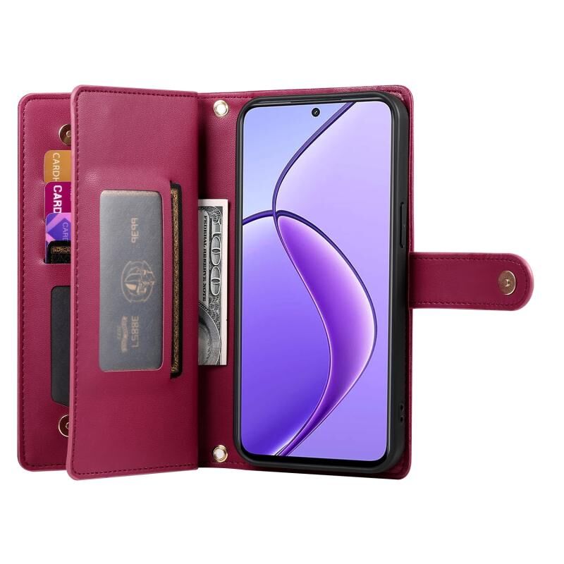 For Realme 12 5G Nine Card-slot Zipper Wallet Bag Leather Phone Case(Red)