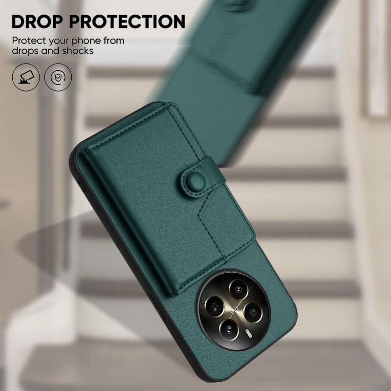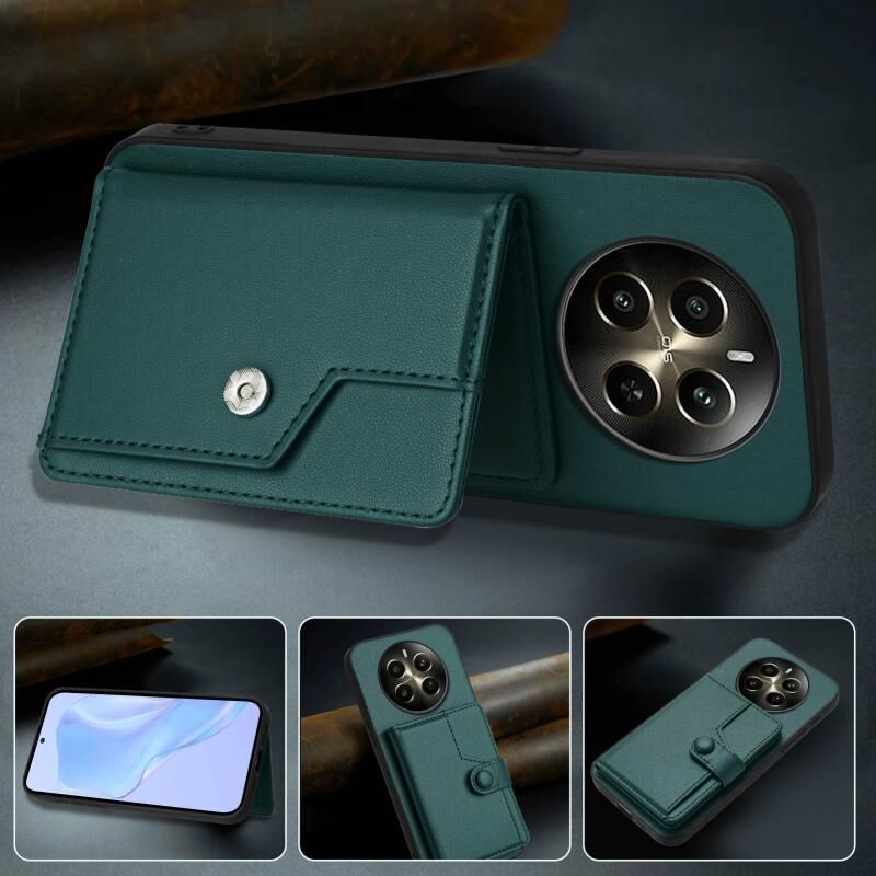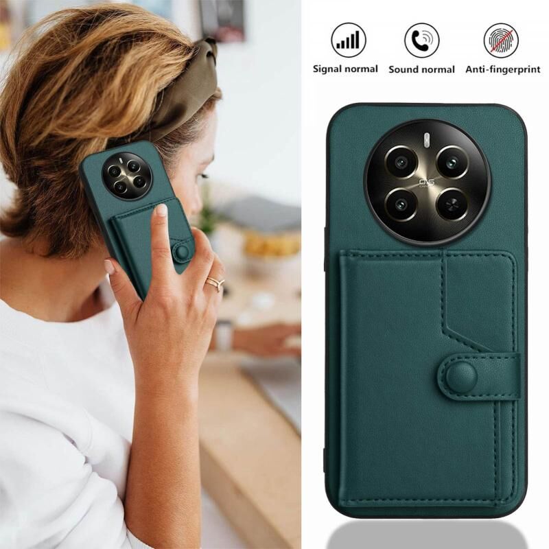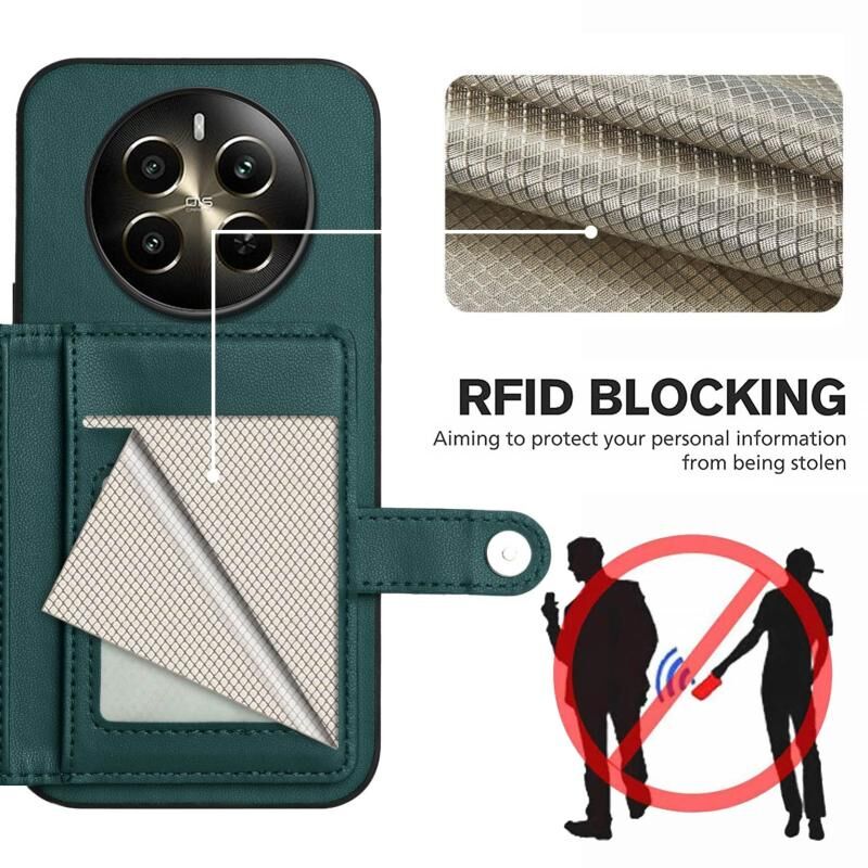 For Realme 12+ 5G / P1 5G Button Card Bag RFID Anti-theft Phone Case(Green)