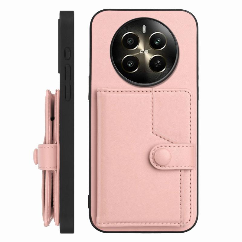 For Realme 12+ 5G / P1 5G Button Card Bag RFID Anti-theft Phone Case(Pink)