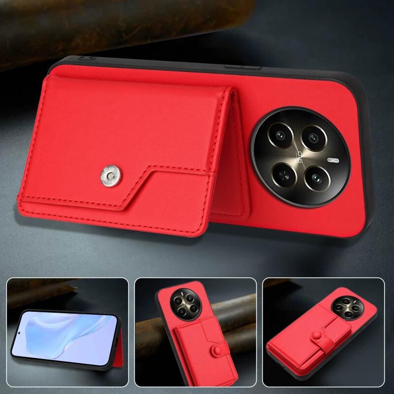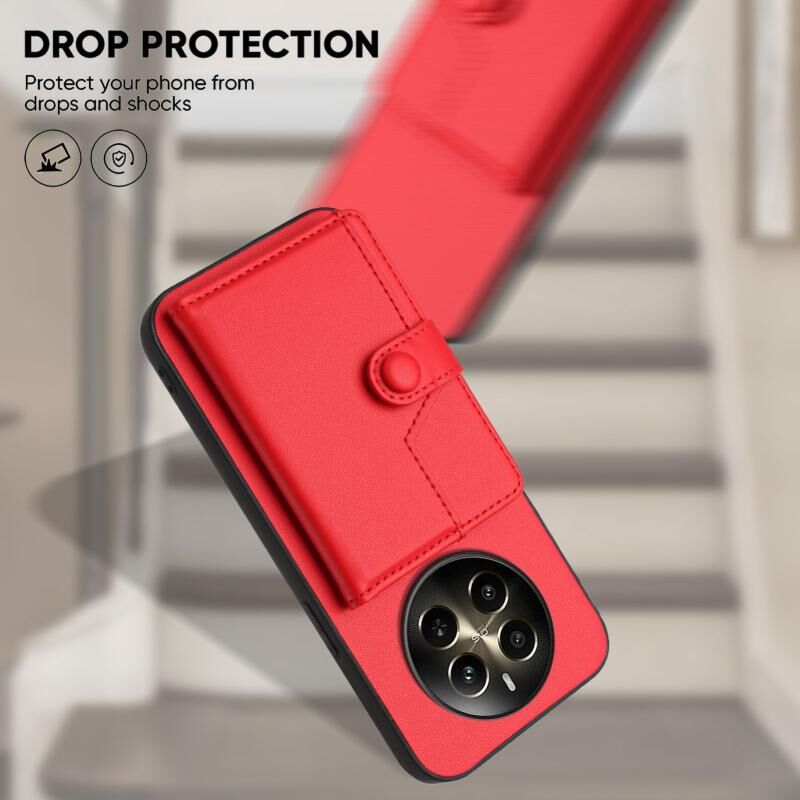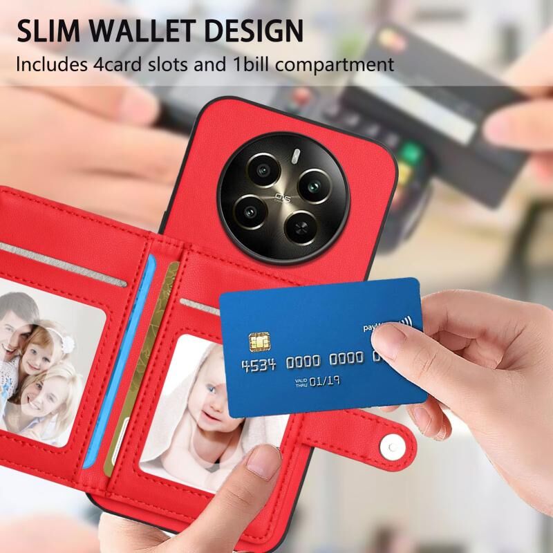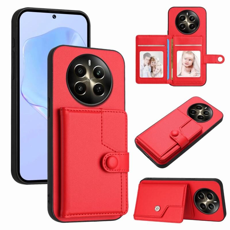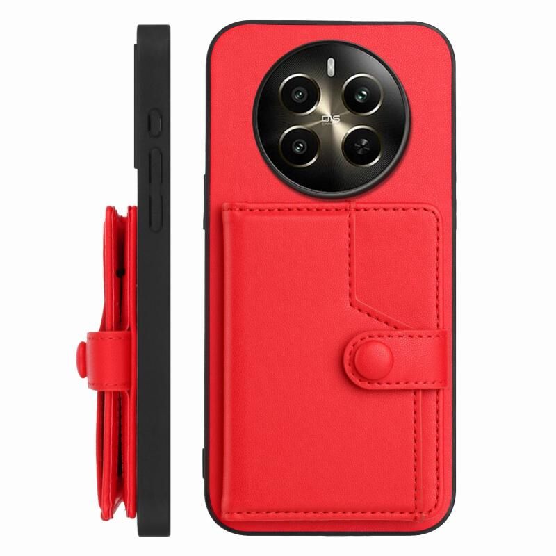 For Realme 12+ 5G / P1 5G Button Card Bag RFID Anti-theft Phone Case(Red)