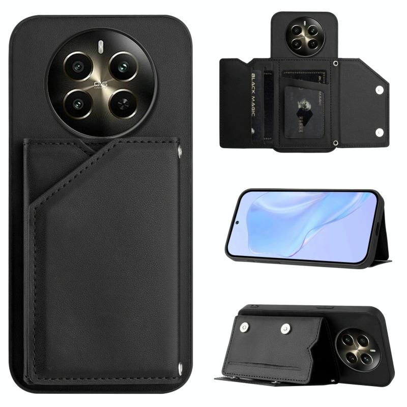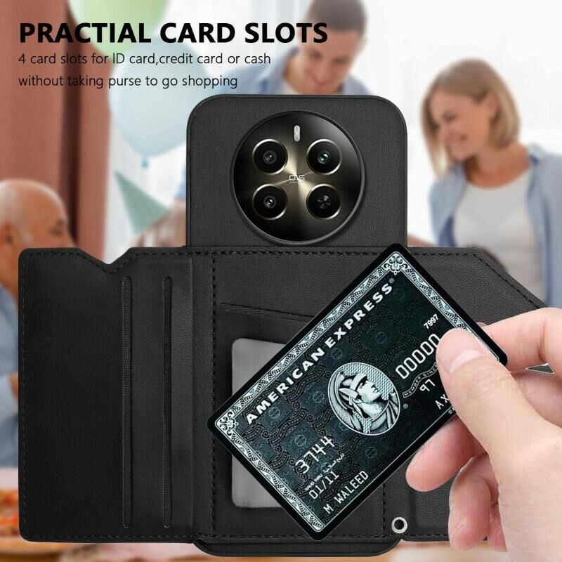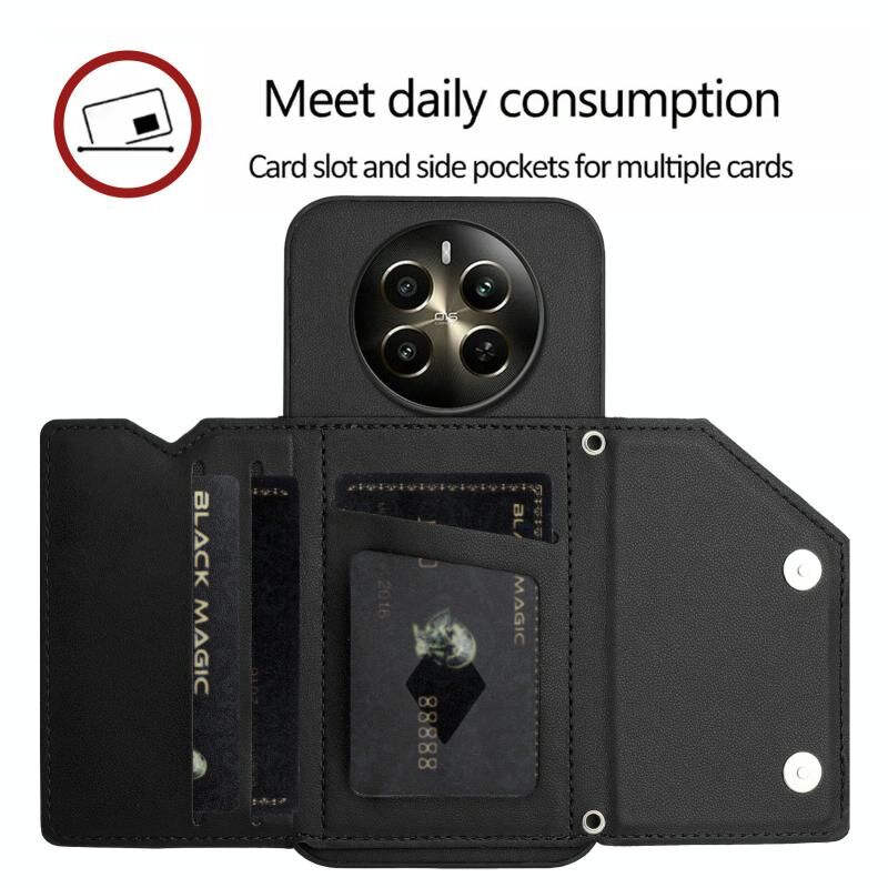 Για Realme 12 + 5G / P1 5G Skin Feel Τέσσερις υποδοχές καρτών υπόθεση τηλεφώνου με λουράκι καρπού (μαύρο)
