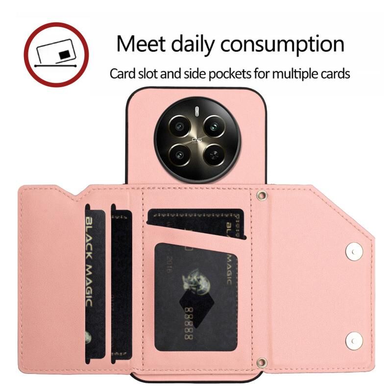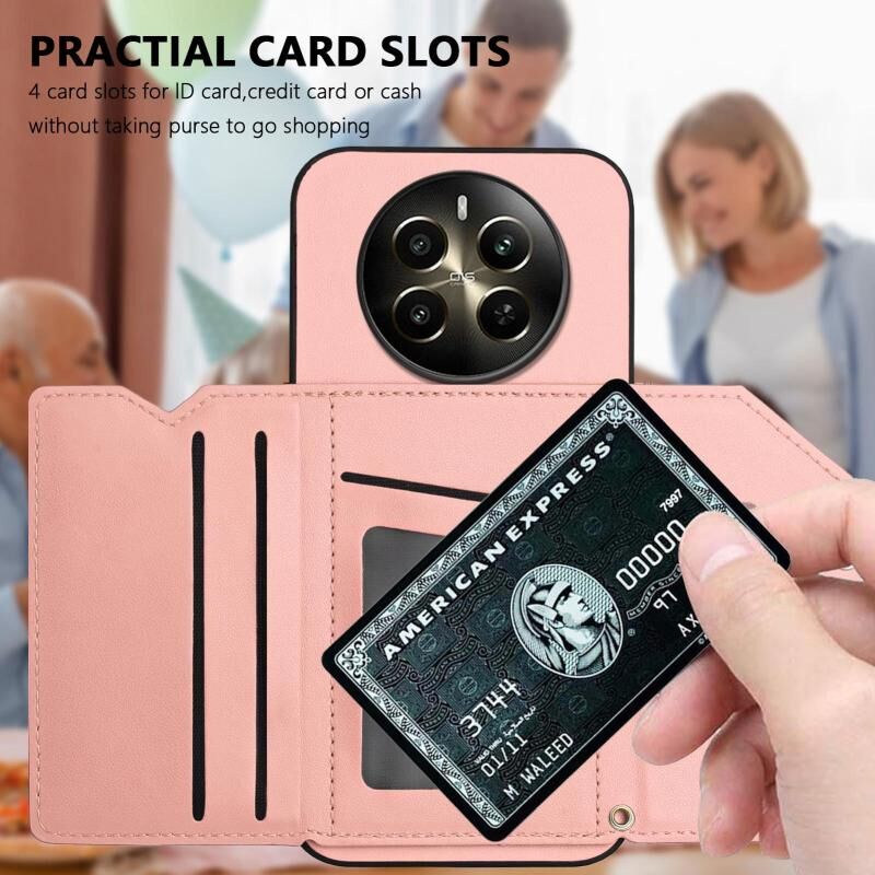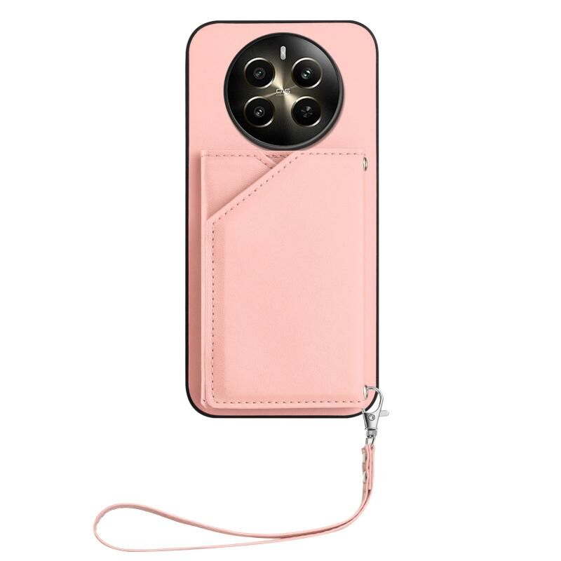 Για Realme 12 + 5G / P1 5G Skin Feel Τέσσερις υποδοχές καρτών υπόθεση τηλεφώνου με λουράκι καρπού (ροζ)