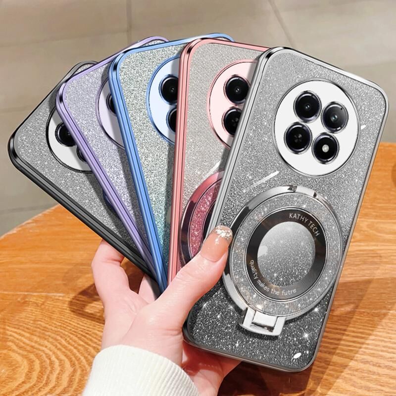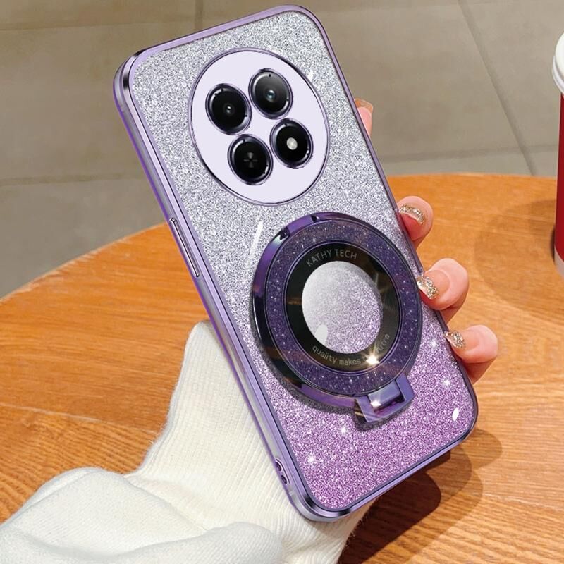 For Realme 12 5G Plated Gradient Glitter Round Holder TPU Phone Case(Purple)