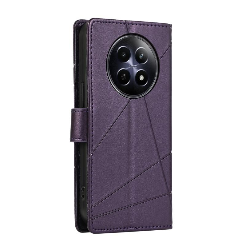 For Realme 12 5G PU Genuine Leather Texture Embossed Line Phone Case(Purple)