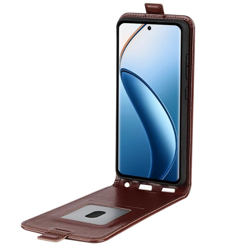 For Realme 12+ 5G R64 Texture Single Vertical Flip Leather Phone Case(Brown)