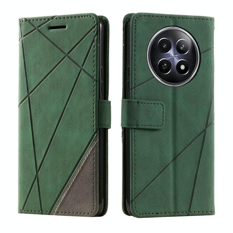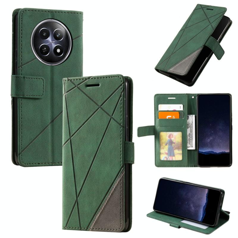 For Realme 12 5G Skin Feel Splicing Leather Phone Case(Green)