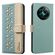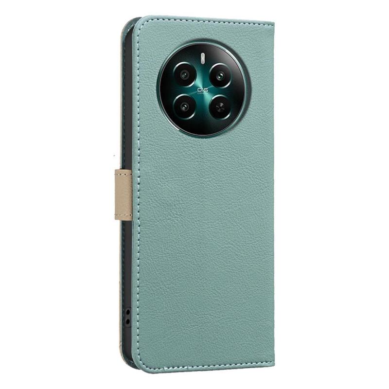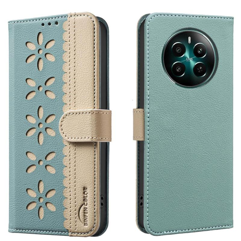 For Realme 12+ 5G Splicing Color Hollow Flower Pattern RFID Leather Phone Case(Green)