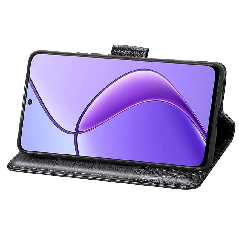 For Realme 12 Butterfly Love Flower Embossed Leather Phone Case(Black)