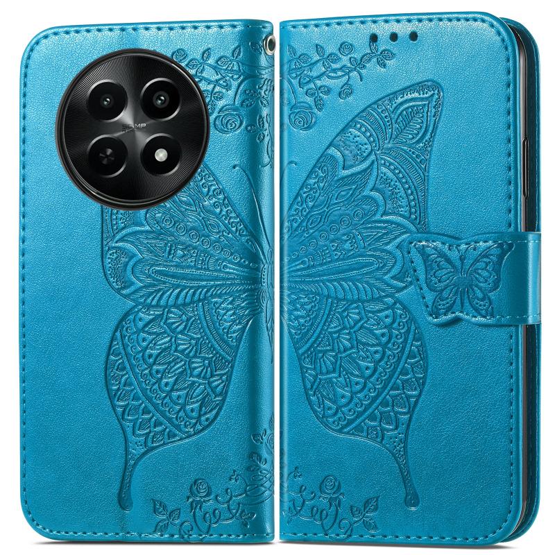 For Realme 12 Butterfly Love Flower Embossed Leather Phone Case(Blue)