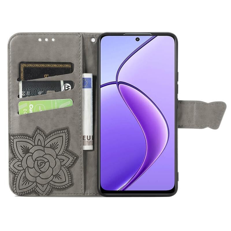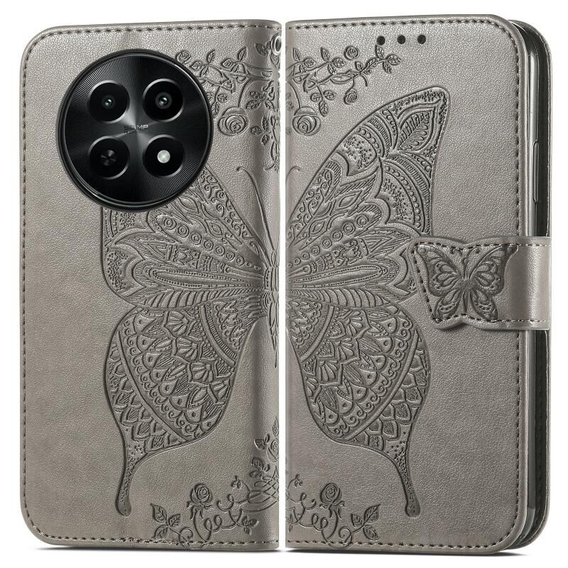 For Realme 12 Butterfly Love Flower Embossed Leather Phone Case(Gray)