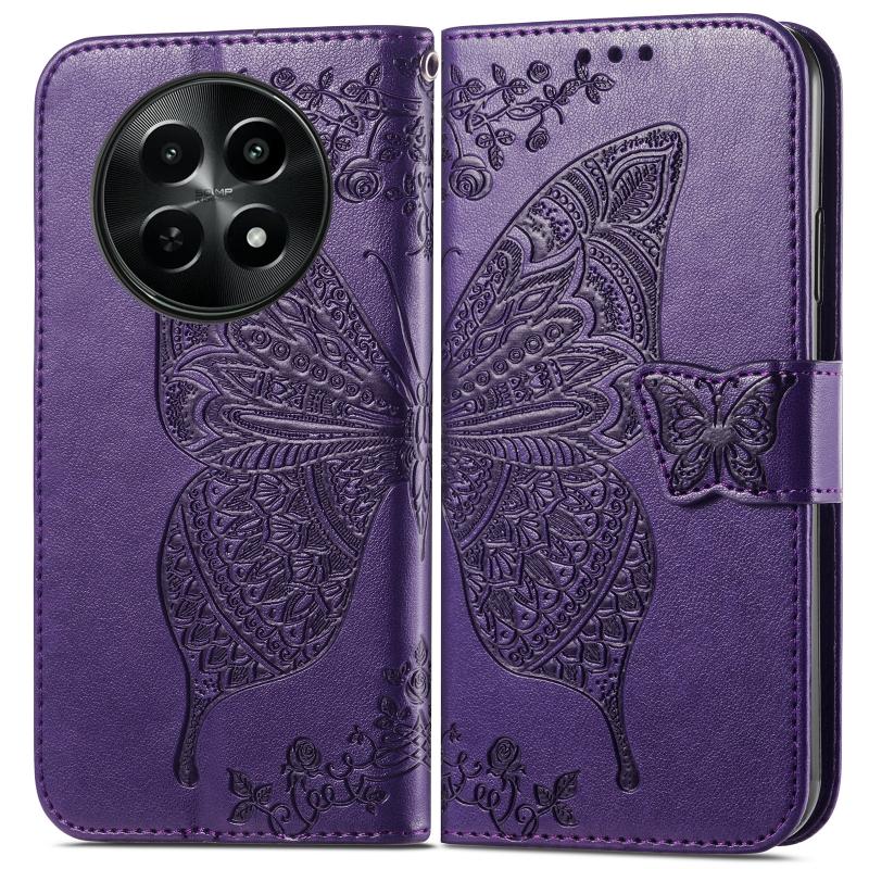 For Realme 12 Butterfly Love Flower Embossed Leather Phone Case(Purple)