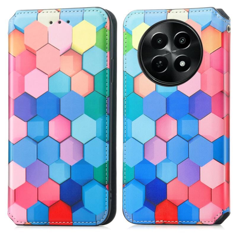 Θήκη για Realme 12 CaseNeo, πολύχρωμη μαγνητική θήκη από δέρμα (Μωβ Λέπια)