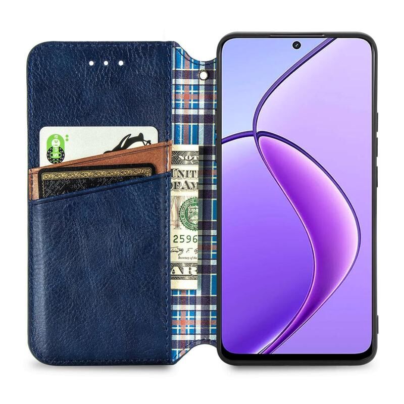 Για Realme 12 Cubic Grid Πιεσμένο μαγνητική δερμάτινη θήκη τηλεφώνου (μπλε)