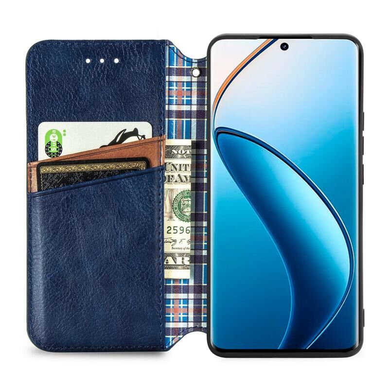 Θήκη τηλεφώνου Realme 12+ Cubic Grid Pressed Magnetic Leather (Μαύρο)